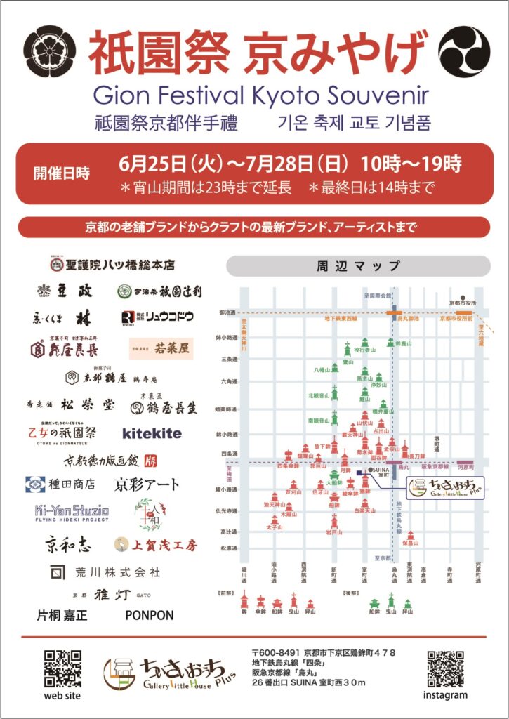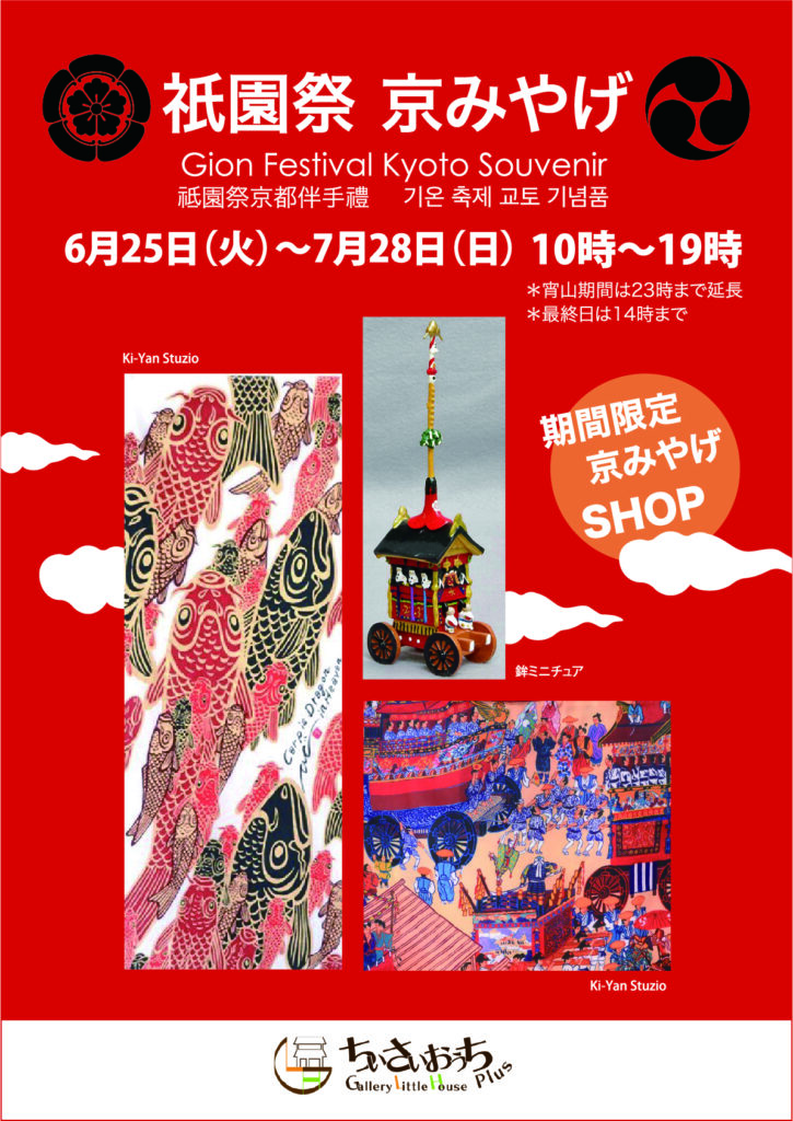 今年も京都市の老舗有名ギャラリー『ちいさいおうち』様のイベント『祇園祭 京みやげ』に昨年に引き続き出展致します。